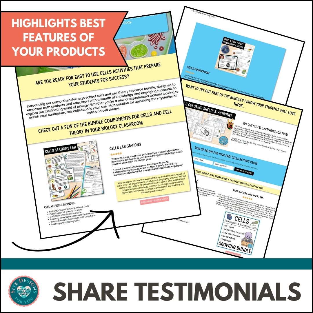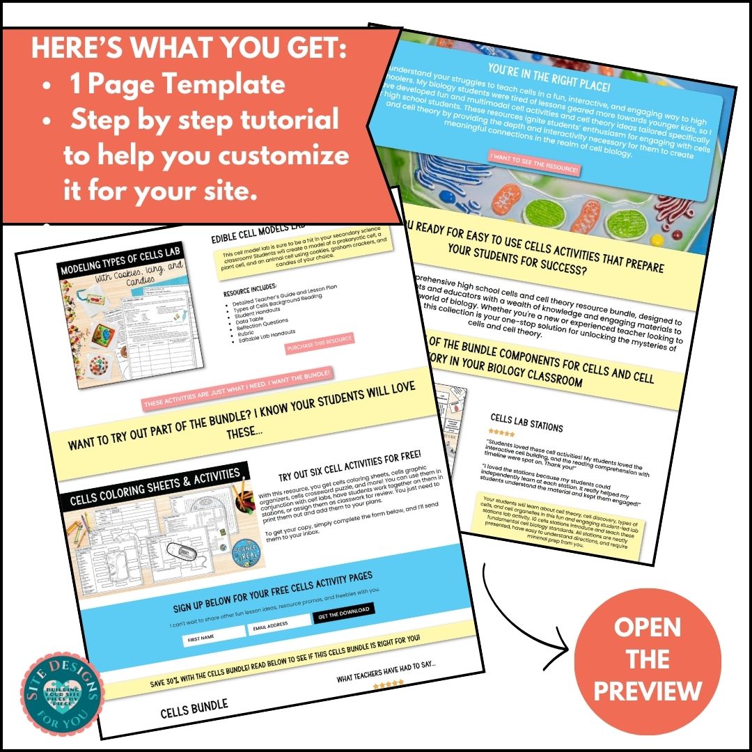 Why yes there is! You can visit THIS LINK. I created this page for one of my clients. To set your page up, I have added video tutorials demonstrating how to customize your pages step by step. All you’ll need are product photos or mockups to that showcase your resource’s best features. You can also modify the page to use them as landing pages for your email lists too.