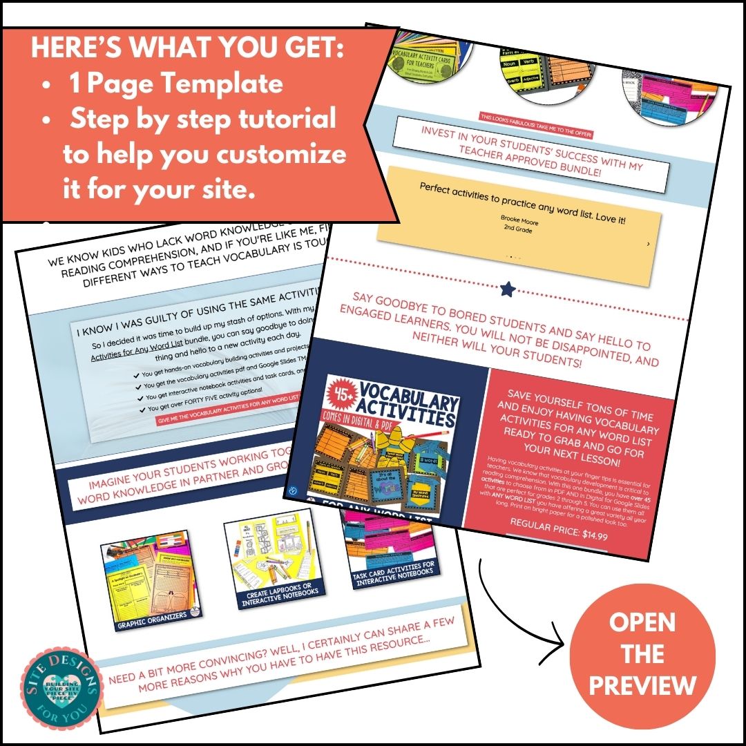 Why yes there is! You can visit THIS LINK. I used this page to promote one of my bundles and have Facebook ads running to them. To set your page up, I have added video tutorials demonstrating how to customize your pages step by step. All you’ll need are product photos or mockups to that showcase your resource’s best features. You can also modify the page to use them as landing pages for your email lists too.
