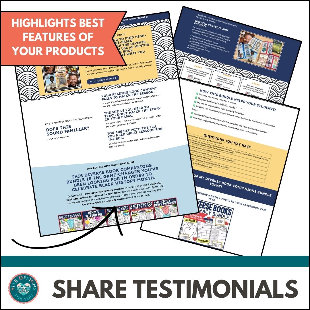 Why yes there is! You can visit THIS LINK. I used this page to promote one of my bundles and have Facebook ads running to them. To set your page up, I have added video tutorials demonstrating how to customize your pages step by step. All you’ll need are product photos or mockups to that showcase your resource’s best features. You can also modify the page to use them as landing pages for your email lists too.